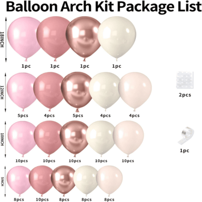 دھول گلابی غبارہ چھوٹی کٹ :یہ چھوٹی کٹ 50 سے 80pcs گلابی غبارے پر مشتمل ہے۔ سیٹ کے پرتوں کے اثر کو بڑھانے کے ل you ، آپ سفید ، خوبانی اور شفاف غبارے بھی شامل کرسکتے ہیں۔ ان کو بھرنے کے لئے ہیلیم کا استعمال کریں اور پھر آپ باندھنے کے لئے ربن کا استعمال کرسکتے ہیں اور پھر انہیں ہوا میں تیرنے دیں۔
