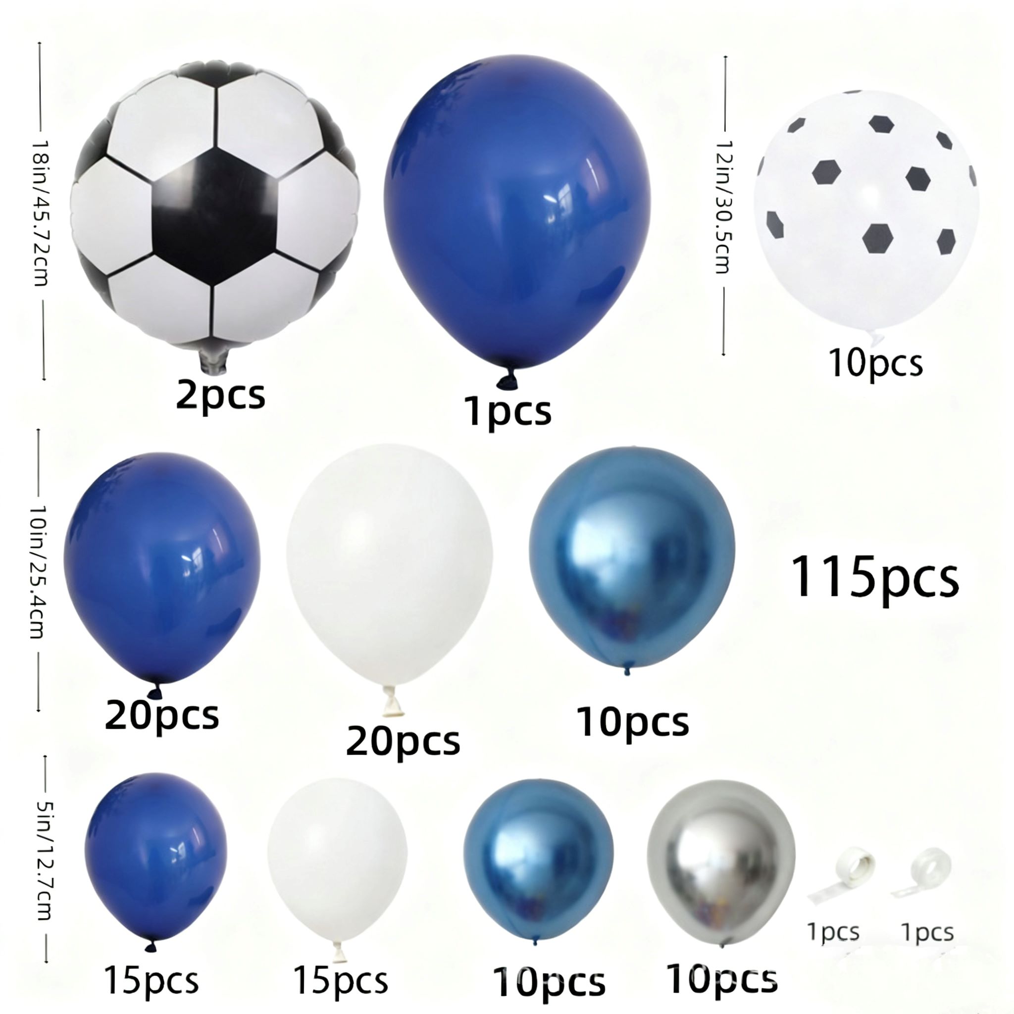 کل 115 پی سی ایس فٹ بال تھیم بیلون آرک کٹس۔