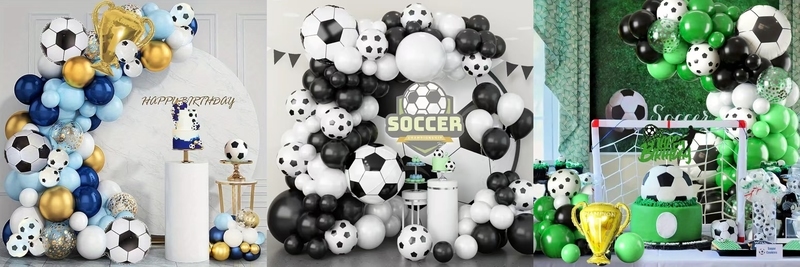 1. جب آپ بیلون کٹس کو اپنی مرضی کے مطابق بناتے ہیں تو ، آپ صرف سبز رنگ یا نیلے رنگ کے رنگ کے غبارے استعمال کرسکتے ہیں اور کچھ ڈال سکتے ہیںفٹ بال پرنٹ شدہ غبارے، پھر نیچے کی تصویر کی طرح ایک بہت ہی خوبصورت سیٹ بنیں: