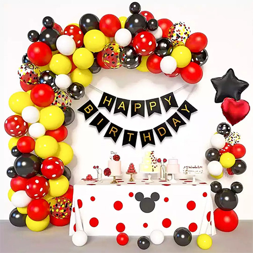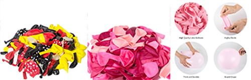 یہمکی ماؤس کے غبارے کی مالا کی چاپبنیادی طور پر گلابی اور سرخ سیریز میں دستیاب ہے، بشموللیٹیکس کے غبارے, ورق کے غبارے، سالگرہ کے کاغذ کے بینرز، ورق کے پردے اور دیگر لوازمات۔ اس پیکج کے تمام لوازمات اچھے معیار کے ہیں۔