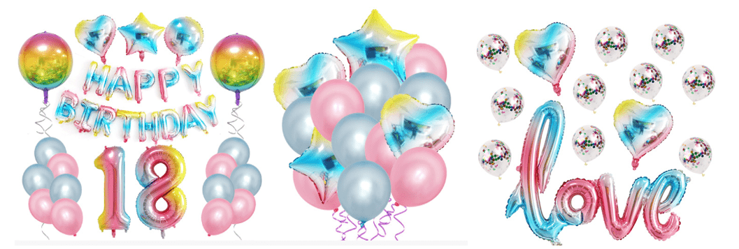 رنگین پہلو: تدریجی بلومنگ ، رنگ سلائی ، قوس قزح کی پٹیوں اور دیگر عملوں کا استعمال کرتے ہوئے قوس قزح کی تعداد ورق غبارے ، جس میں رنگین اثرات کی ایک بہت بڑی قسم ہے۔ کچھ مصنوعات سرخ ، اورینج ، پیلے ، سبز ، نیلے ، انڈگو اور جامنی رنگ کے سات بنیادی رنگوں پر مبنی ہیں۔ قدرتی منتقلی کی بتدریج تبدیلی کی ٹکنالوجی کے ذریعے ، وہ بارش کے بعد اندردخش کی طرح شفاف ساخت بناتے ہیں۔ کچھ مصنوعات اعلی سنترپتی کے ساتھ رنگین تصادم کا استعمال کرتی ہیں ، جیسے گلابی اور نیلے رنگ کے چھڑکنے ، پیلے اور سبز بازگشت ، جس سے ایک مضبوط بصری اثر پڑتا ہے اور پارٹی کے ماحول کو روشن کرنا ہوتا ہے۔ یہ رنگین ڈیزائن عوام کی نفسیاتی ایسوسی ایشن کی خوبصورتی اور قسمت کے مطابق ہیں جو قوس قزح کی علامت ہیں ، اور مختلف موضوعات کے ساتھ پارٹی اسٹائل کے مطابق بھی ڈھال سکتے ہیں۔