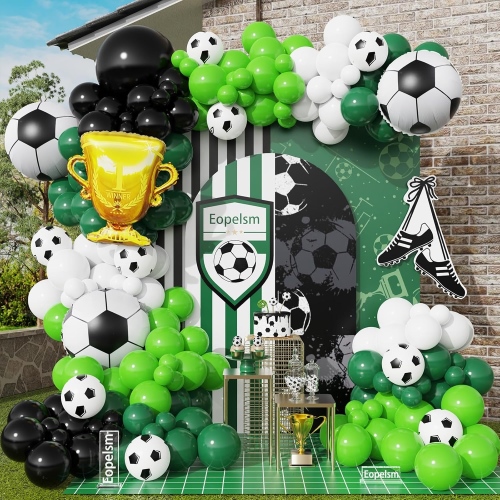 کٹس میں 12 انچ گہرا سبز شامل ہے۔لیٹیکس کے غبارے, 12 انچ سیاہ لیٹیکس غبارے، 12 انچ سبز کنفیٹی لیٹیکس غبارے، 12 انچ دھاتی چاندی کے لیٹیکس غبارے، 12 انچ فٹ بال پرنٹنگ لیٹیکس غبارے، ساکر فوائل غبارے، ستارے کے فوائل غبارے، سالگرہ مبارک ہو پیپر بینر اور فلورز جیسے کاغذی بینر پٹی