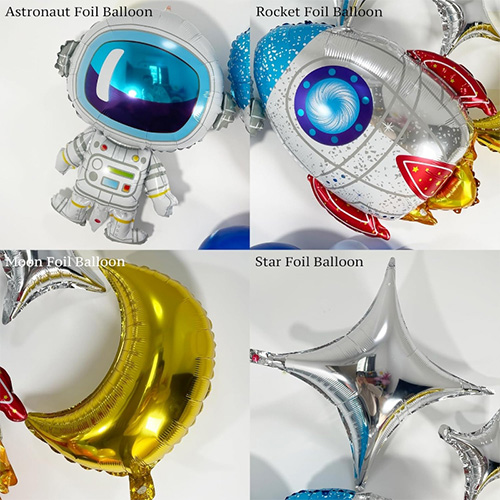 اس خلائی غبارے کی مالا میں عام طور پر مختلف سائز کے لیٹیکس غبارے، ورق کے غبارے، فشنگ لائنز، ربن اور دیگر لوازمات ہوتے ہیں، مخصوص مواد مختلف پیکیج کی ترتیبات کے تابع ہوتا ہے۔