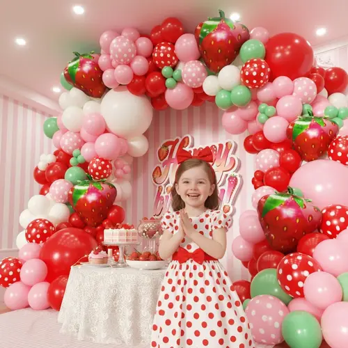 اسٹرابیری تھیم والے غبارے کا مالا۔ |