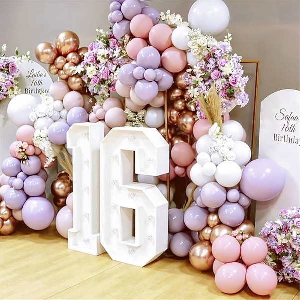 16ویں سالگرہ کو سویٹ سولہ کہا جاتا ہے اور یہ ترقی کا ایک یادگار نقطہ ہے، جو بچپن سے جوانی میں مزید منتقلی کی علامت ہے۔ اس خاص دن کو منانے کے لیے پارٹیوں کے انعقاد میں خاندانوں کی بہتر مدد کرنے کے لیے، ہماری فیکٹری نے صارفین کی خریداری کی ضروریات کو پورا کرنے کے لیے خصوصی طور پر ایک سویٹ 16 بیلون آرچ لانچ کیا۔ یہ مالا آرچ سیٹ لیٹیکس غبارے، ورق کے غبارے، سالگرہ کے بینرز، غبارے کے ڈبوں، گلو پوائنٹس اور دیگر لوازمات پر مشتمل ہے۔ ہمارے لیٹیکس غبارے قدرتی ربڑ سے بنے ہیں، فوائل غبارے اعلیٰ معیار کے ایلومینیم فوائل مواد سے بنے ہیں، اور 16ویں سالگرہ کی سجاوٹ کے ہر سیٹ کا بغور معائنہ کیا جاتا ہے تاکہ اعلیٰ معیار کے معیار کو یقینی بنایا جا سکے۔ غبارہ پائیدار، پھٹنے سے مزاحم، بے عیب اور ہوا اور ہیلیم دونوں بھرنے کے لیے موزوں ہے۔ اس غبارے کے محراب کے علاوہ، ہم نے 16 لیڈ لائٹ کے ساتھ ایک غبارے کی مالا بھی تیار کی ہے۔ 16 لیڈ لائٹ آپ کی سالگرہ کو مزید دلکش بناتی ہے، اور یہاں تین موڈز ہیں جیسے کہ قیادت میں سے انتخاب کرنا۔ ہمارے پاس 16 سال پرانا سالگرہ پرنٹنگ لیٹیکس بیلون سیٹ بھی ہے۔ یہ سیٹ عام طور پر 12 انچ کے لیٹیکس غباروں میں استعمال ہوتا ہے۔ پیٹرن واضح ہے اور نقصان پہنچانا آسان نہیں ہے۔ اسے طویل عرصے تک استعمال کیا جا سکتا ہے۔ ہم نے یہ پیکجز ایک ہی وقت میں مختلف اور بڑے مواقع کے لیے آپ کی ضروریات کو پورا کرنے کے لیے بنائے ہیں، جس سے آپ کی پارٹی میں خوشی کا ماحول شامل ہے۔