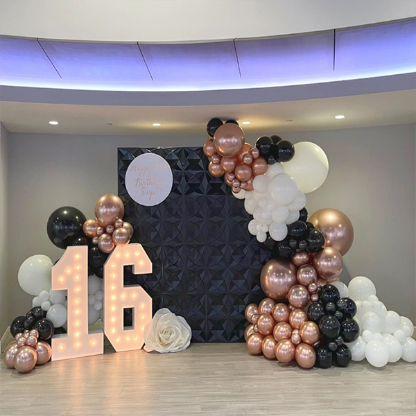 سویٹ 16 بیلون آرچ اس پیکیج میں لیٹیکس غبارے، فوائل غبارے، سالگرہ کے بینرز، گلو سپاٹ، ربن وغیرہ شامل ہیں۔ اگر آپ کو خصوصی ضرورت ہے تو ہم آپ کی ضرورت کے مطابق پیکیج کے اندر غبارے کے سائز، مقدار، رنگ وغیرہ کو بھی اپنی مرضی کے مطابق بنا سکتے ہیں۔s