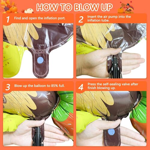تھینکس گیونگ ورق غبارے پھلنے اور مہر لگانے میں بہت آسان ہوں گے۔ آپ پھل پھولنے کے لئے دستی پمپ یا الیکٹرک پمپ کا استعمال کرسکتے ہیں ، اور پھر اسے خود چپکنے والی گلو کے ساتھ مہر لگاسکتے ہیں جو ہر غبارے کے نوزل پر ہوتا ہے۔ ایک بار مہر لگنے کے بعد ، غبارہ مضبوط ہوجائے گا۔