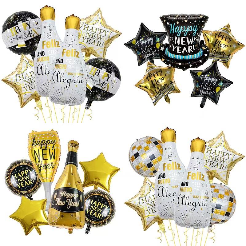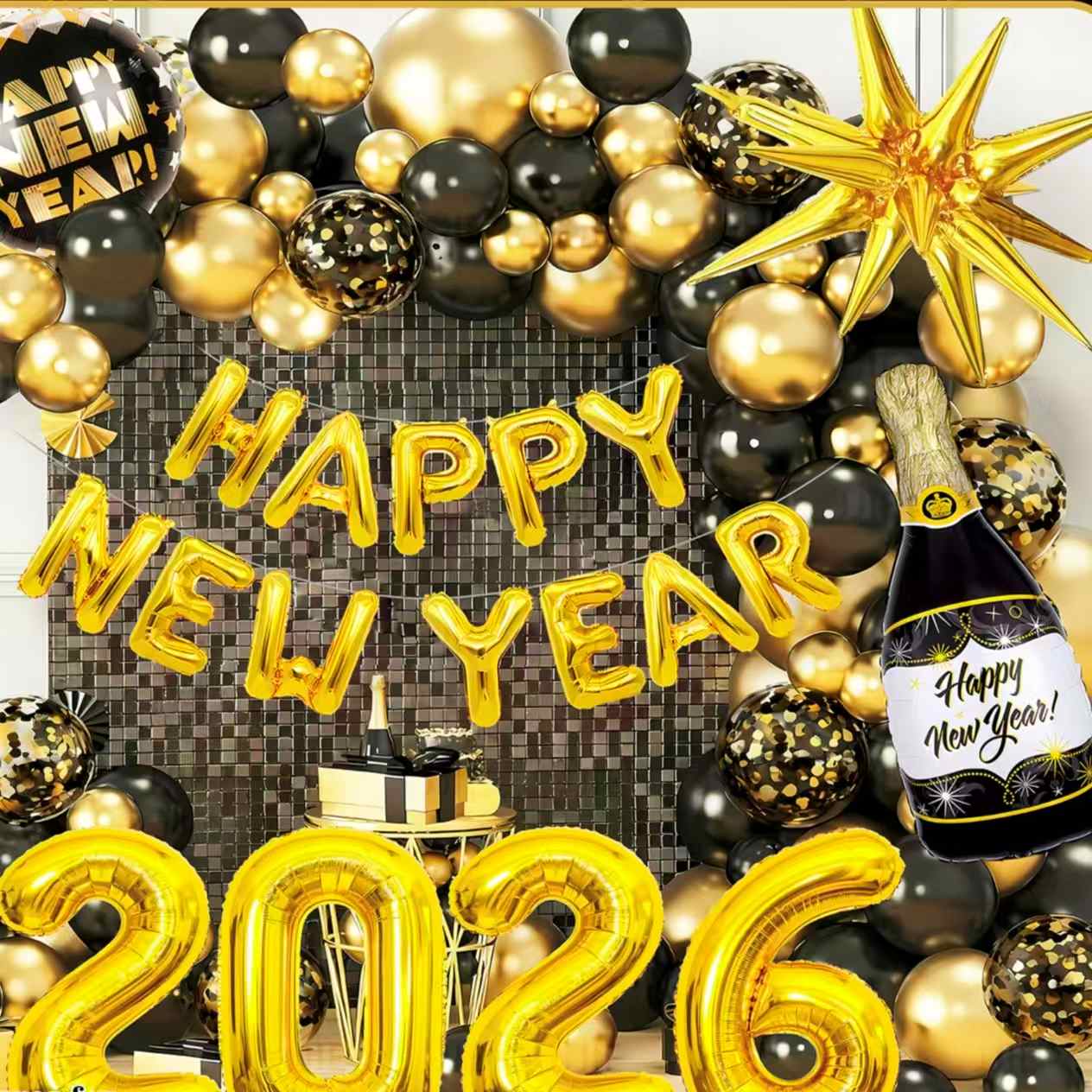 نئے سال تیمادار سیٹ کے بارے میں سوچئے۔ اس میں ورق غبارے ہیں جو شیمپین کی بوتلوں کی طرح نظر آتے ہیں۔ اس میں "2026" نمبر گببارے ، اسٹار آرائشی گببارے اور بہت کچھ بھی شامل ہے۔ مرکزی رنگ سیاہ سونے یا سونے کی سفید ہیں۔ یہ نئے سال کے تہوار کی خوشی سے بھرا ہوا ہے۔ یہ آسانی سے ایک پرتعیش اور رسمی طور پر نئے سال کی پارٹی کا منظر بنا سکتا ہے۔